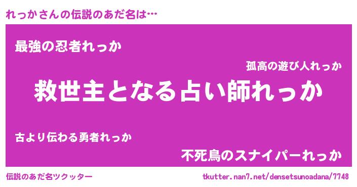 | ヒーロー風カッコイイあだ名 | 『慈愛の使者れっか』『仮面レッダー』 |