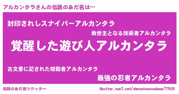 | 男性向けラノベタイトル風あだ名 | 『この素晴らしい世界にアルカンタラを!』 |