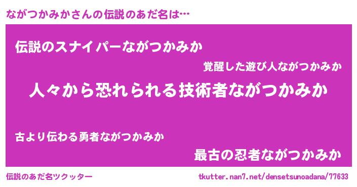 | 意味不明あだ名 | 『住所不定無職ながつかみか(12歳)』 |