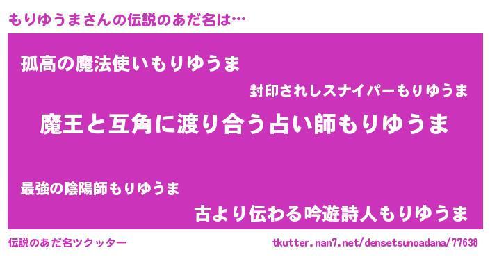| 女子向けラノベタイトル風あだ名 | 『もりゆうま恋絵巻』 |