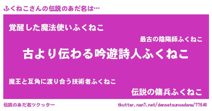 | 意味不明あだ名 | 『永久保存ふくねこ』『自称ふくねこ』 |