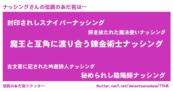 | ヒーロー風カッコイイあだ名 | 『仮面ナッダー』『天空の使者ナッシング』 |