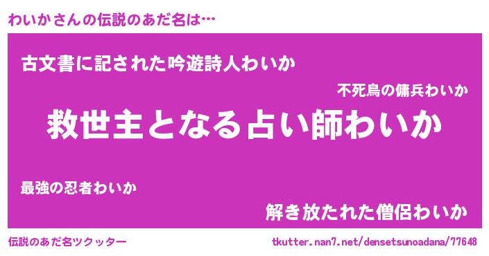 | 意味不明あだ名 | 『住所不定無職わいか(47歳)』『自称わいか』 |