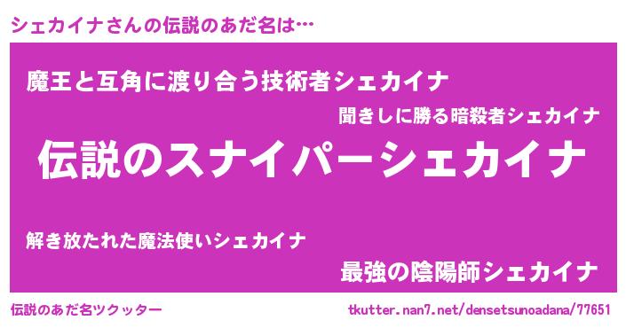 | 意味不明あだ名 | 『自称シェカイナ』『ペロリンシェカイナ』 |