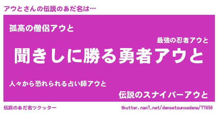 | 意味不明あだ名 | 『自称アウと』『永久保存アウと』 |