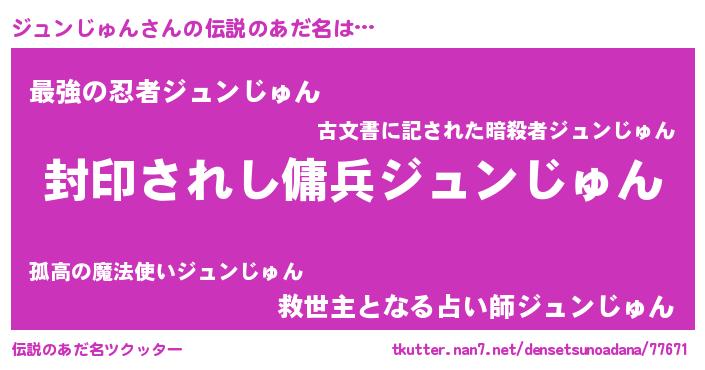| 男性向けラノベタイトル風あだ名 | 『Re:ジュンじゅんから始める異世界生活』 |