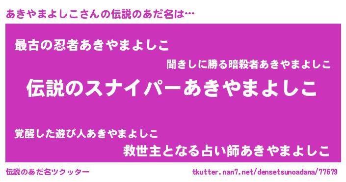 | 女子向けラノベタイトル風あだ名 | 『あきやまよしこなんてお断りですっ。』 |
