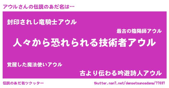 | ヒーロー風カッコイイあだ名 | 『正義の使者アウル』『仮面アウダー』 |