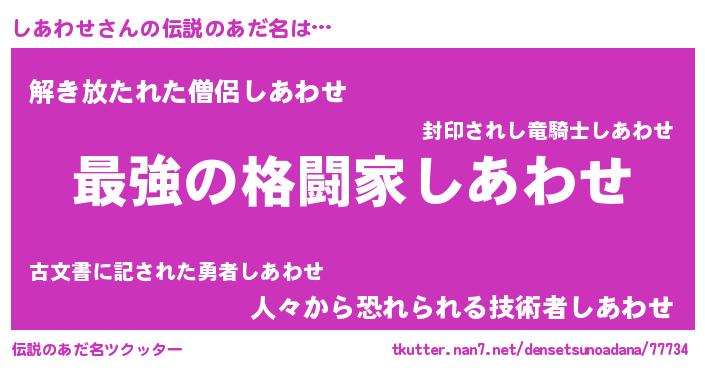 | ヒーロー風カッコイイあだ名 | 『ウルトラしあわせマン』『仮面シアダー』 |