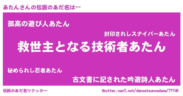 | 女子向けラノベタイトル風あだ名 | 『死神あたんの再婚』『闇のあたん』 |