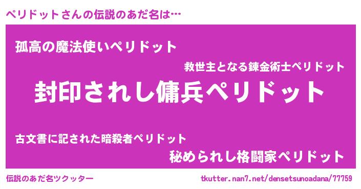 | ヒーロー風カッコイイあだ名 | 『スーパーペリドット』『黄金騎士ペリ』 |