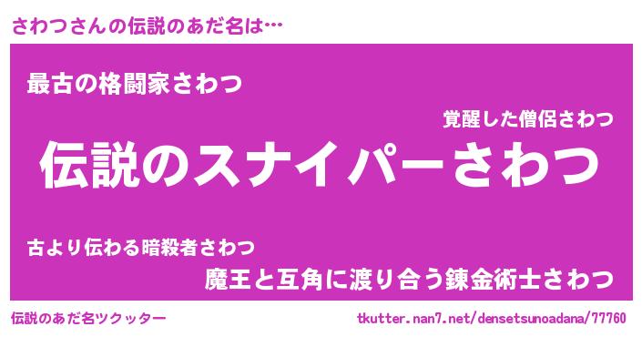 | 意味不明あだ名 | 『自称さわつ』『たけのこ科さわつ属』 |
