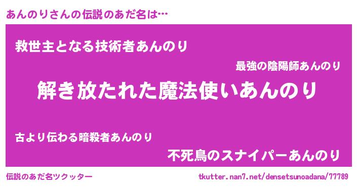 | ヒーロー風カッコイイあだ名 | 『サイバー戦士アンノリ』『天弓騎士アン』 |