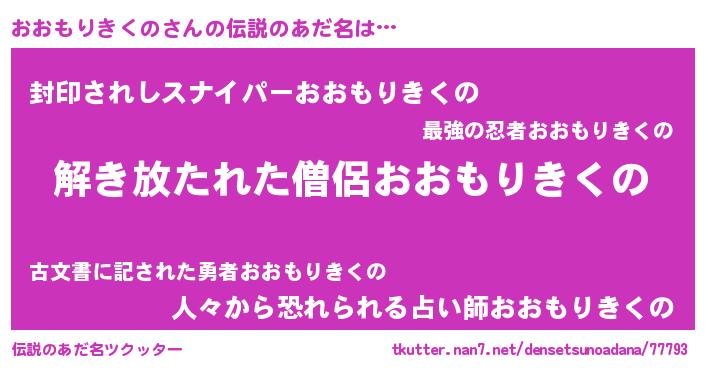 | 肩書あだ名 | 『おおもりきくの閣下』 |