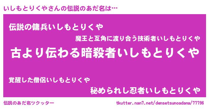 | 意味不明あだ名 | 『永久保存いしもとりくや』 |