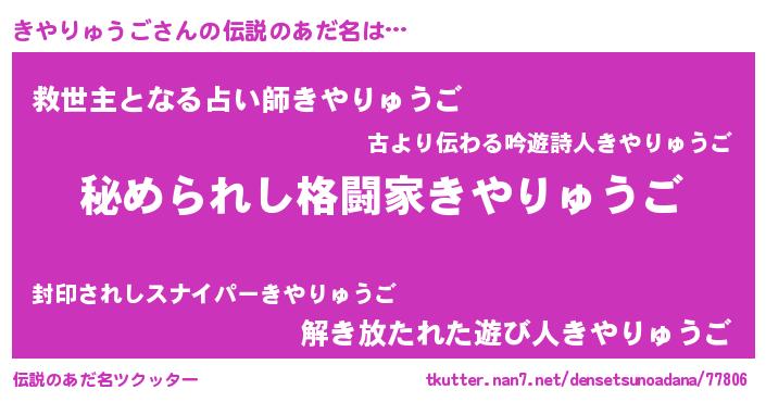 | ヒーロー風カッコイイあだ名 | 『ウルトラきやりゅうごマン』 |