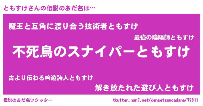| 胡散臭い通販商品みたいなあだ名 | 『モテモテ間違いなし霊験あらたかなお札…その名も「ともすけ」』 |