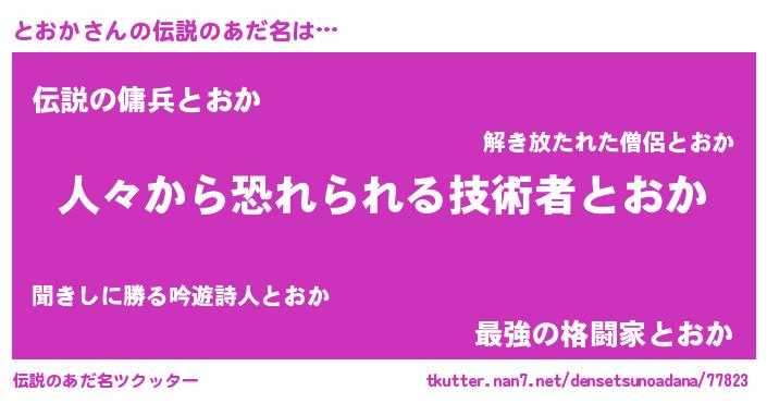 | ヒーロー風カッコイイあだ名 | 『正義の使者とおか』『仮面トオダー』 |
