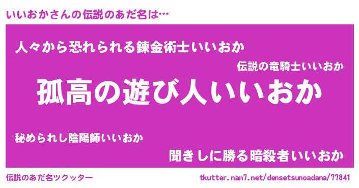 | ヒーロー風カッコイイあだ名 | 『超時空戦士イイオカ』『暗黒騎士イイ』 |