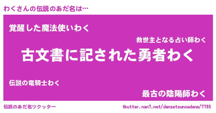 | 意味不明あだ名 | 『住所不定無職わく(81歳)』『永久保存わく』 |
