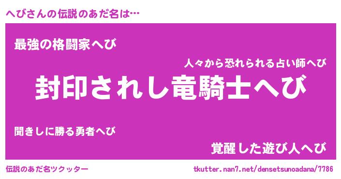 | 男性向けラノベタイトル風あだ名 | 『ヘビアートオンライン』 |