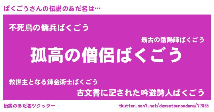 | 意味不明あだ名 | 『自称ばくごう』『エリンギ科ばくごう属』 |