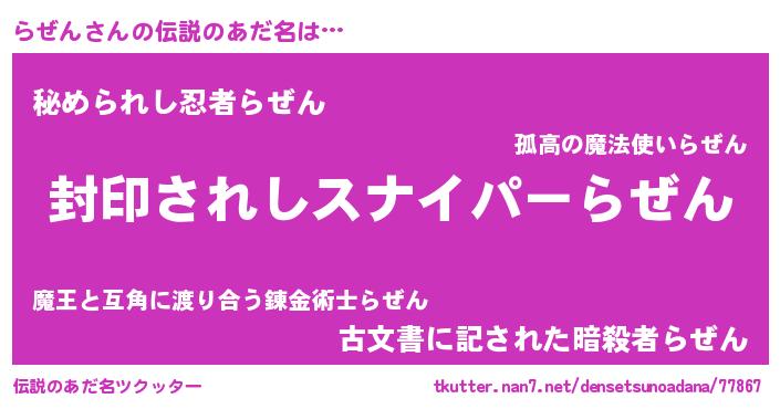 | ヒーロー風カッコイイあだ名 | 『スーパーラゼン』『ウルトラらぜんマン』 |