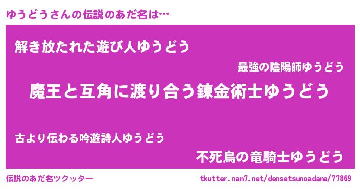 | ヒーロー風カッコイイあだ名 | 『最強戦士ユウドウ』『愛の使者ゆうどう』 |