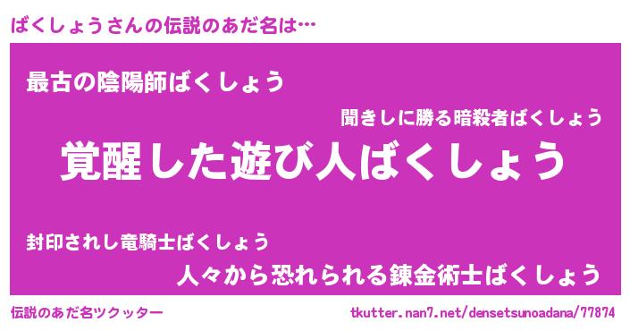 | 意味不明あだ名 | 『とにかく怪しいばくしょう』 |