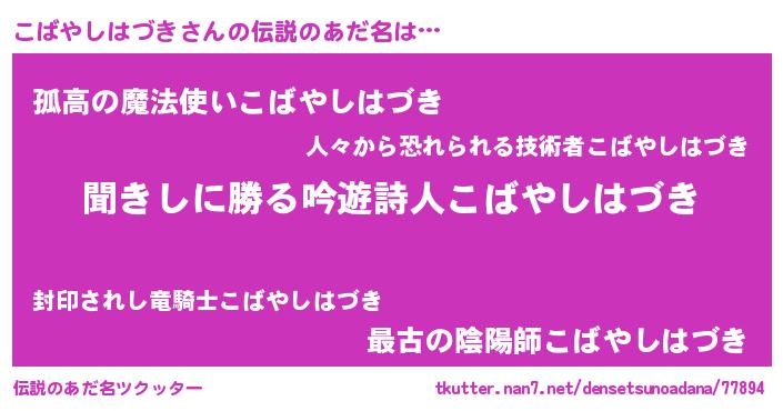 | 女子向けラノベタイトル風あだ名 | 『異世界で失敗しない100のこばやしはづき』 |