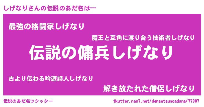 | 男性向けラノベタイトル風あだ名 | 『シゲナリスレイヤー』 |