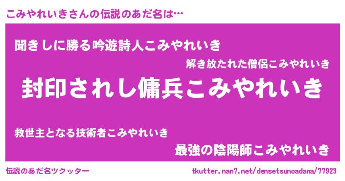 | 男性向けラノベタイトル風あだ名 | 『こみやれいきに滅ぼされるだけの簡単なお仕事です』 |