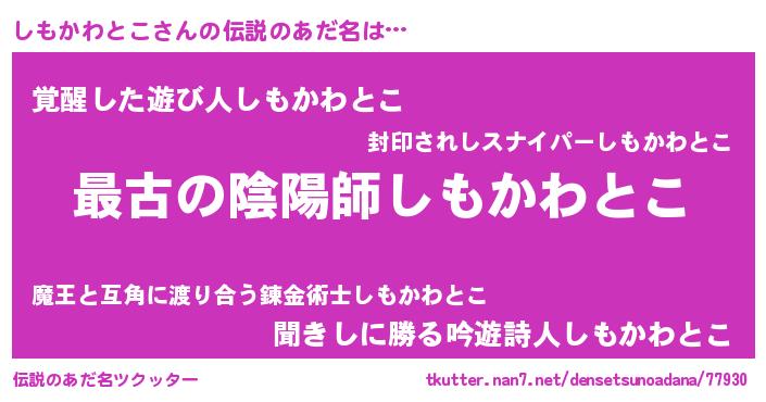| 意味不明あだ名 | 『自称しもかわとこ』 |