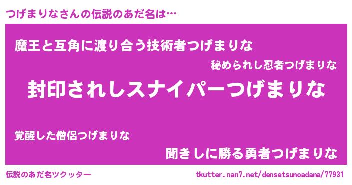 | 男性向けラノベタイトル風あだ名 | 『この素晴らしい世界につげまりなを!』 |
