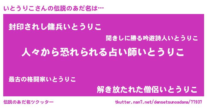 | ヒーロー風カッコイイあだ名 | 『正義の使者いとうりこ』『銀牙騎士イト』 |