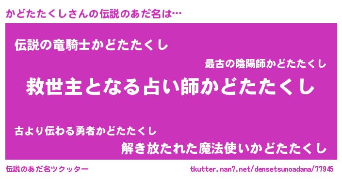 | 意味不明あだ名 | 『住所不定無職かどたたくし(68歳)』 |