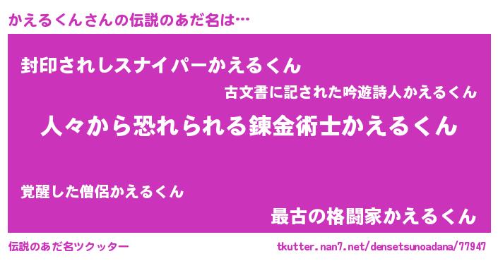 | 意味不明あだ名 | 『住所不定無職かえるくん(98歳)』 |