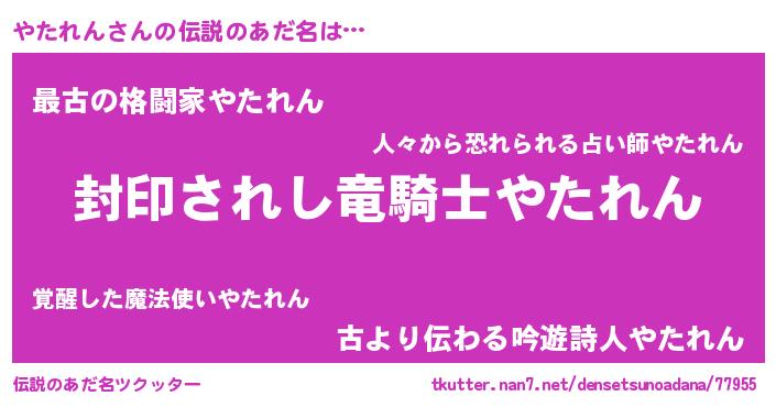 | ヒーロー風カッコイイあだ名 | 『スーパーヤタレン』『仮面ヤタダー』 |