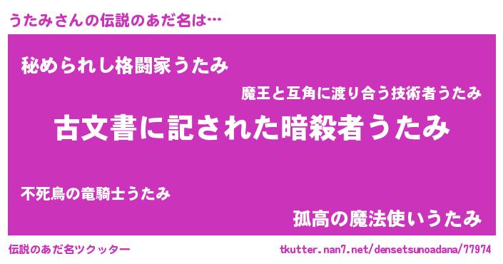 | 意味不明あだ名 | 『永久保存うたみ』『うたみフォーエバー』 |