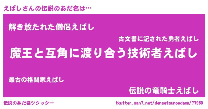 | ヒーロー風カッコイイあだ名 | 『愛の使者えばし』『魔戒騎士エバ』 |