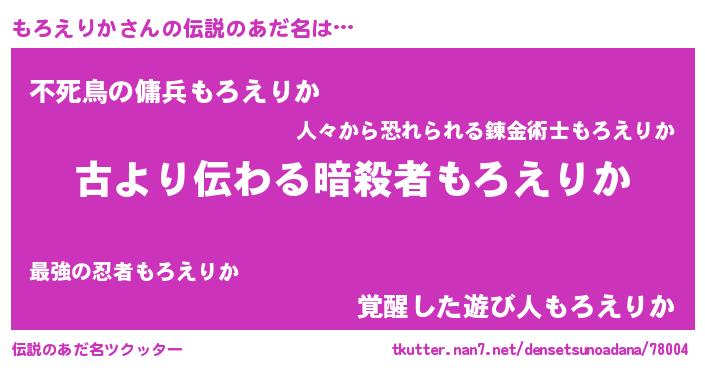 | 意味不明あだ名 | 『永久保存もろえりか』『自称もろえりか』 |