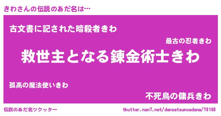 | ヒーロー風カッコイイあだ名 | 『天空の使者きわ』『ネオキワ』 |