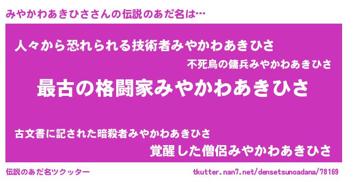 | 意味不明あだ名 | 『みやかわあきひさフォーエバー』 |