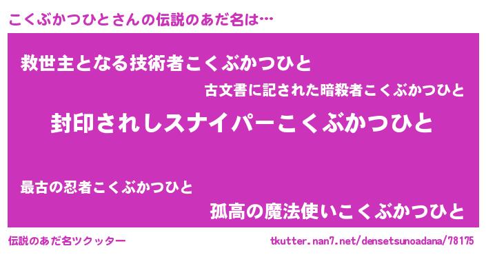 | ヒーロー風カッコイイあだ名 | 『スーパーコクブカツヒト』 |
