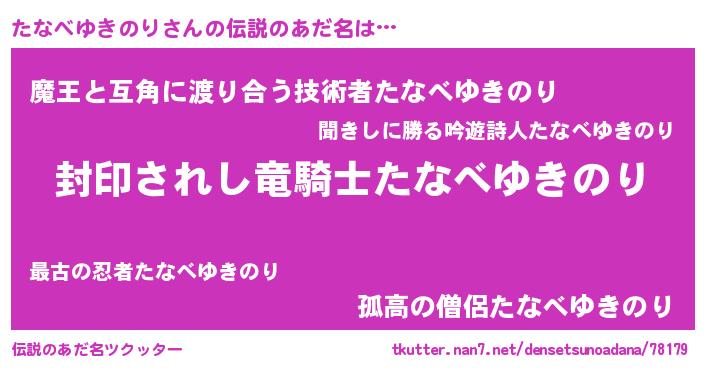 | 男性向けラノベタイトル風あだ名 | 『うちのたなべゆきのりが世界を掌握している!』 |