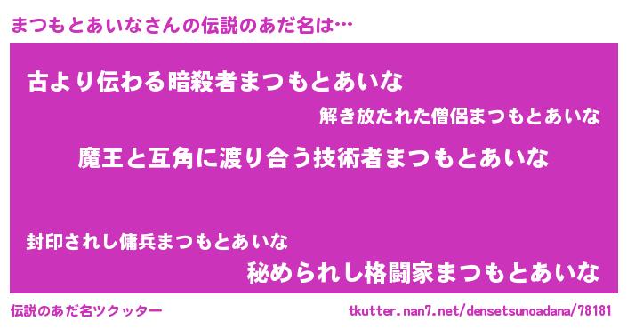 | 肩書あだ名 | 『まつもとあいなマネージャー』 |