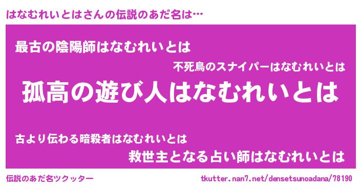 | ポケモン風あだ名 | 『ヒハナムレイトハ』『メロハッナ』 |