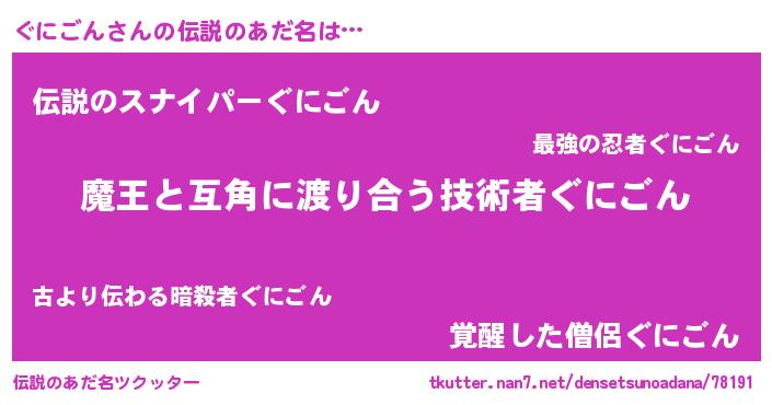 | 女子向けラノベタイトル風あだ名 | 『ぐにごん恋絵巻』『ぐにごん様がみてる』 |