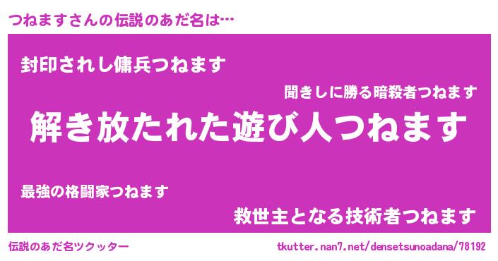 | 意味不明あだ名 | 『とにかく怪しいつねます』 |