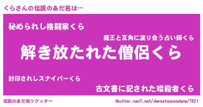 | 男性向けラノベタイトル風あだ名 | 『はたらくくらさま!』『クラスレイヤー』 |